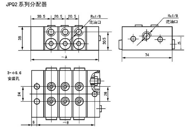 JPQ系列递进分配器是由中碳合金结构钢制造的首片、尾片和3~8片根据设计需要给油量和出油口数的中间体组合而成。 每个系列的中间片除该系列中给油量最小的规格(含单出油口和双出油口)以外,其他规格都有带循环指示器的型式。